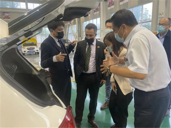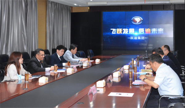 參觀完畢,雙方一起在集團會議室進行了座談,納祖明公使一行人對躍迪集團發展新能源汽車的實力表示了肯定。同時高度贊揚了躍迪集團在新能源汽車行業的發展成果,并表示對合作前景充滿期待。