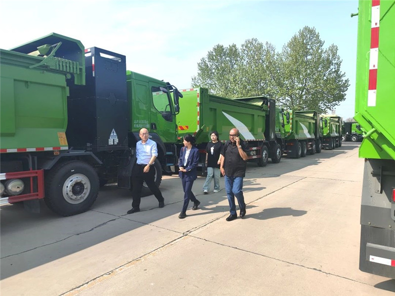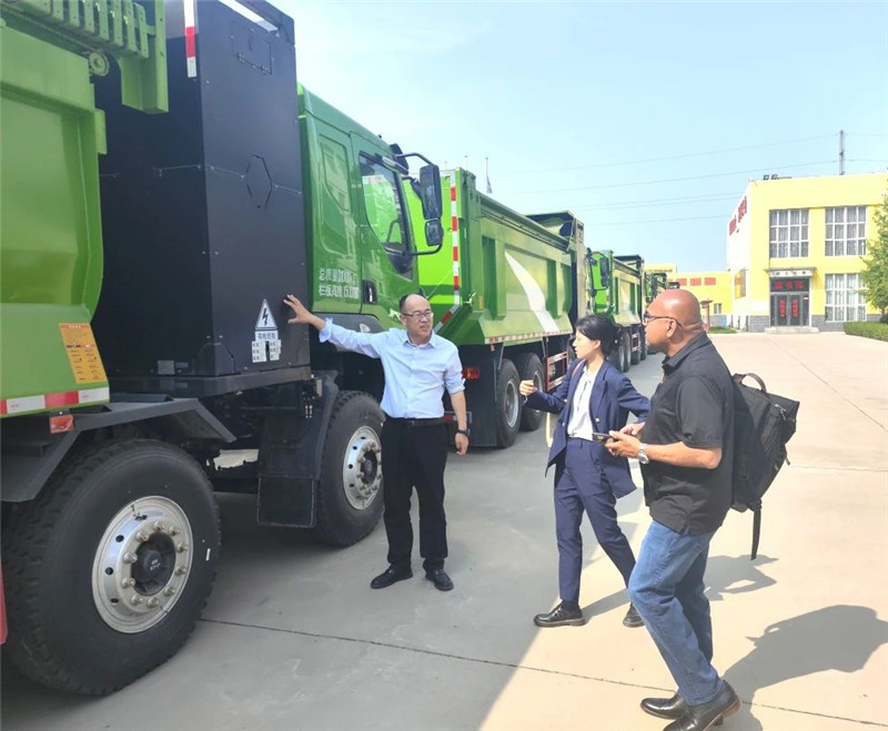 躍迪集團副總裁崔清學向美國客商Tony Joseph介紹了躍迪集團自主研發(fā)的躍迪純電動渣土自卸車。